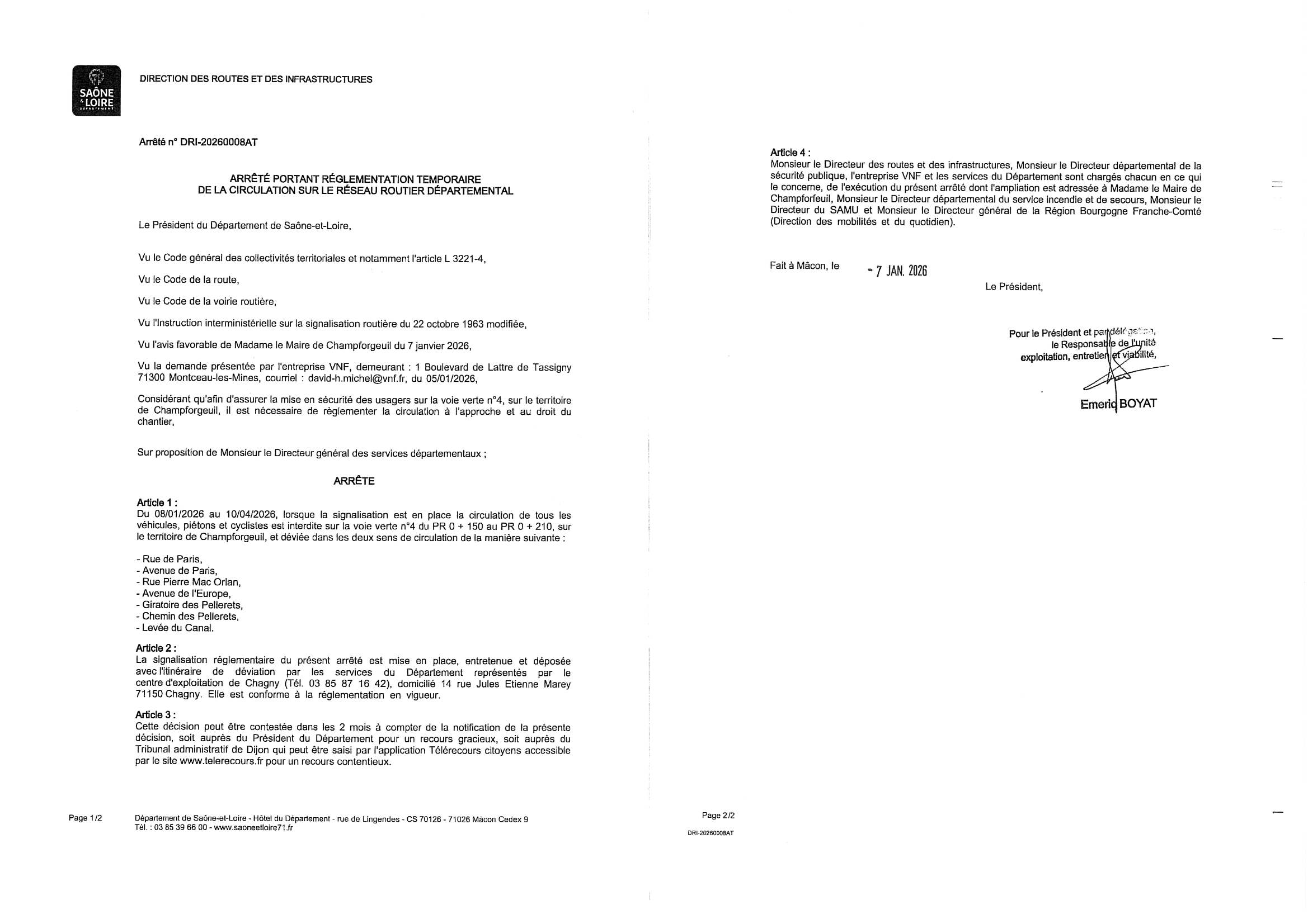 Arrêté circulation sur la voie verte
